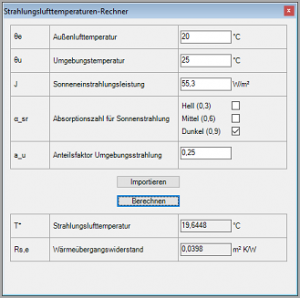 Die exportierten Ergebnisdateien können in der Folge von AnTherm importiert werden, um daraus Strahlungslufttemperaturen und Wärmedurchgangswiderstände zu berechnen.